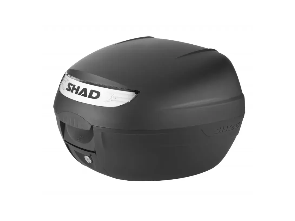 Vrchní kufr SH26 je kompaktní a velmi praktický vrchní kufr vyrobený z vysoce kvalitního tvrzeného polypropylenu, schopný pojmout vyklápěcí helmu a rukavice. Jedná se o základní model řady vrchních kufrů SHAD se zaobleným tvarem a kouřovou odrazkou. Svou velikostí je vhodný pro skútry a menší motorky s nižším objemem.